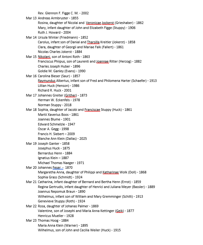 In 1909, Father Henry Pigge erected the beautiful steeple and entrance to the church. He was pastor for 37 years until his death on April 21, 1912, and is the first priest to be buried in the cemetery.