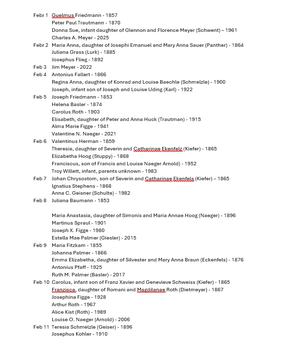 On May 1 (the Feast of St. Joseph the Worker), 1845, the first deed was signed for the Zell Church, dedicated it to St. Joseph, and by 1847 the Parish was built and organized. Father Francis X. Weiss, the Parish’s first pastor, arrived in the spring 1848 and was blessed with 632 parishioners.